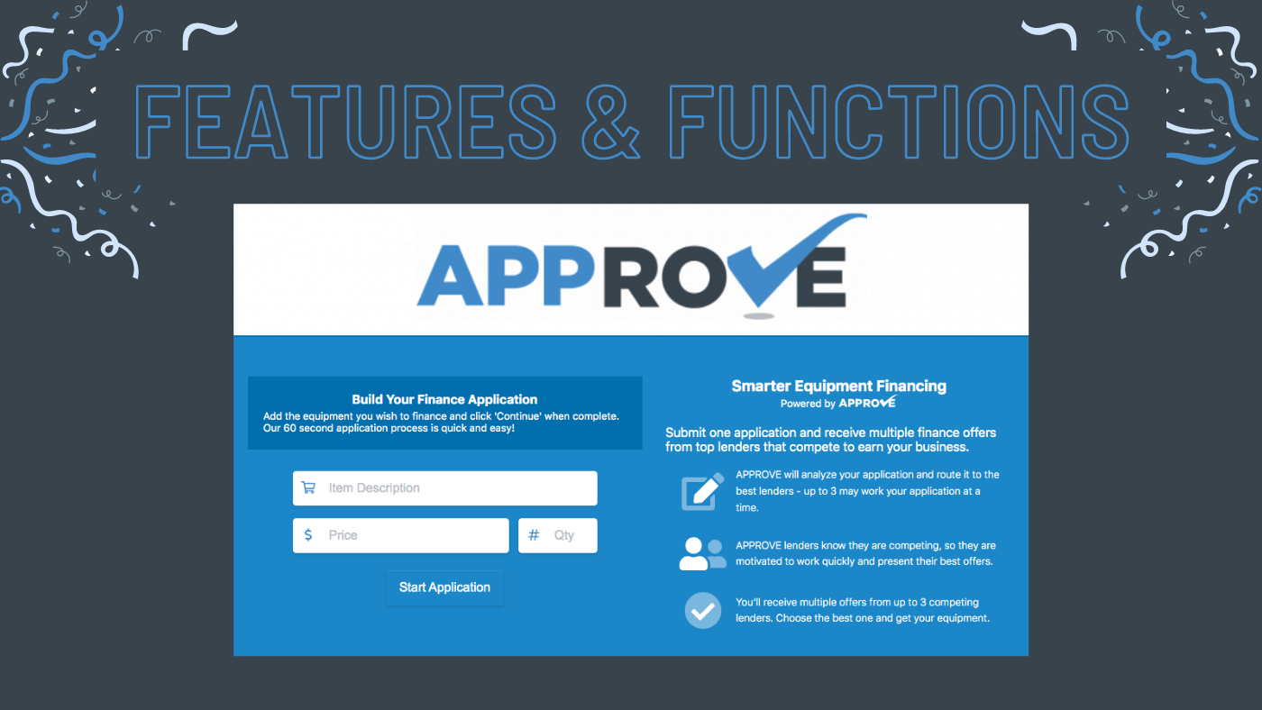 Download the free app right now and you'll carry the power of the APPROVE equipment financing platform in the palm of your hand. No matter where you are, with a few screen taps you'll be able to: